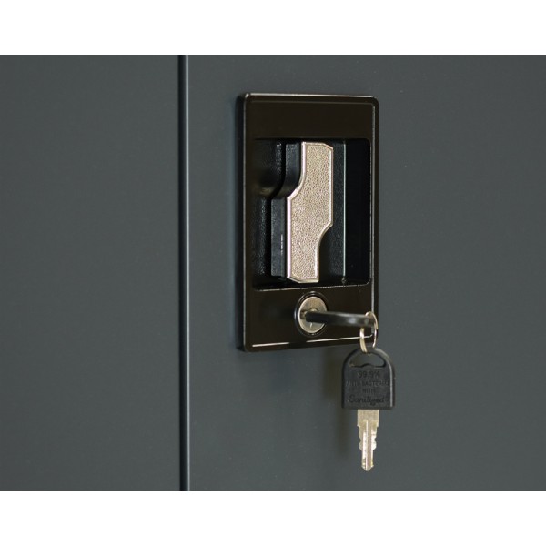 - 3-punktowy zamek zabezpieczający stanowi solidną ochronę przed kradzieżą lub niepożądanych wglądem w zawartość szafy.