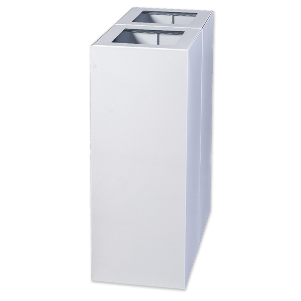 Kosz do segregacji modułowy z ocynkowanej stali ma elegancki, nowoczesny wygląd. Malowanie proszkowe pozwala na uzyskanie jednolitego koloru i matowego wykończenia. Doskonale wpasowuje się we współczesną architekturę miejską czy przestrzeń biurową.