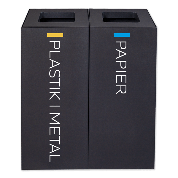 Dostępny w naszej ofercie zestaw do segregacji śmieci 2-komorowy to rozwiązanie modułowe. Przy jego wykorzystaniu, może powstać stacja do segregacji odpadów dopasowana do indywidualnych potrzeb przestrzeni i użytkowników. Klient może wybrać naklejkę właściwą dla gromadzonej w nim frakcji: