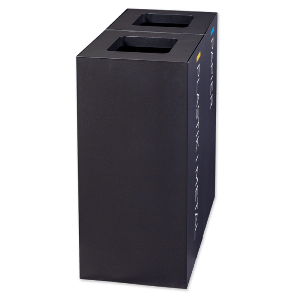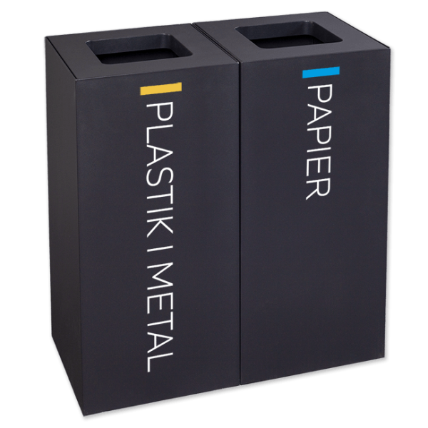 Dostępny w naszej ofercie kosz do segregacji modułowy jest dostępny w czarnym kolorze (RAL 9005). Użytkownik może wybrać dowolną naklejkę do segregacji (zgodną z ustalonymi kolorami frakcji) do samodzielnego przyklejenia. Zestaw do segregacji śmieci 2-komorowy ma konstrukcję wolnostojącą.