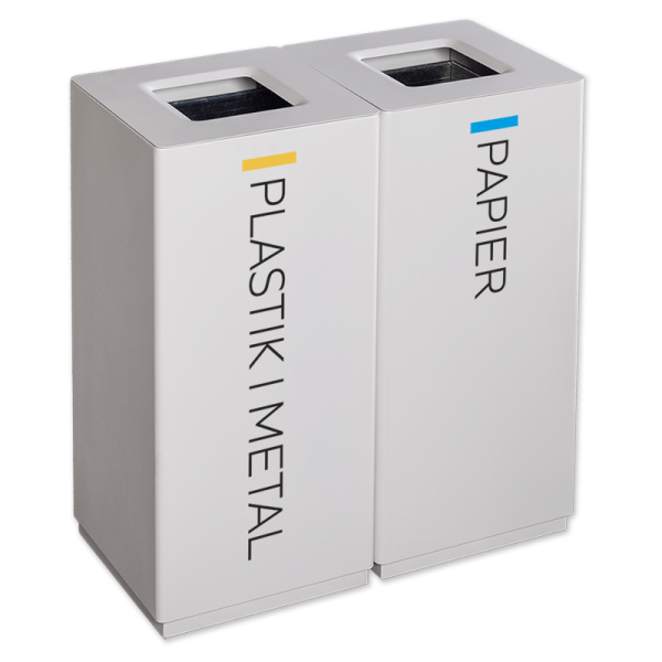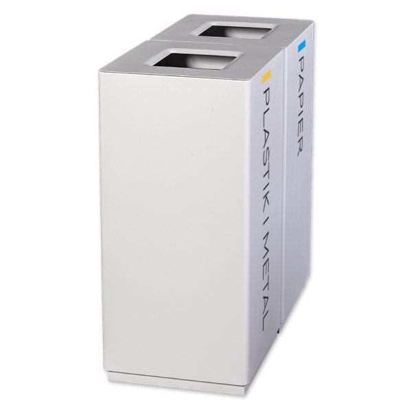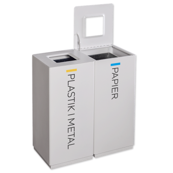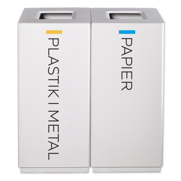 Dostępny w naszej ofercie kosz do segregacji śmieci 2-komorowy ma pojemność 2 x 60 litrów i jest utrzymany w białej kolorystyce. Cechuje go konstrukcja wolnostojąca. Kosz do segregacji modułowy może być oznaczony wybraną przez Klienta naklejką w kolorze frakcji (5 do wyboru).