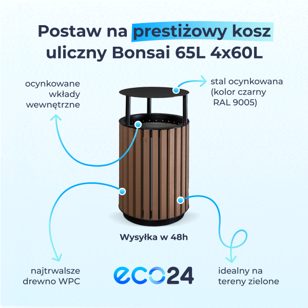 Kosz miejski drewniany Bonsai 65L to przede wszystkim: