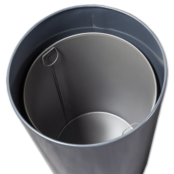 Kosz miejski to wysoka jakość, ponadczasowa estetyka oraz niepodważalna funkcjonalność. W projekcie nie mogło więc zabraknąć praktycznego wkładu wewnętrznego ze stali ocynkowanej, który istotnie ułatwia opróżnianie i utrzymanie w czystości. Dostęp do wnętrza pojemnika mają wyłącznie osoby upoważnione, ponieważ zintegrowana pokrywa jest zamykana na kluczyk. Aby uniknąć nieestetycznie porozrzucanych niedopałków, kosz na śmieci uliczny Strasburg 70l posiada wbudowaną popielnicę.
