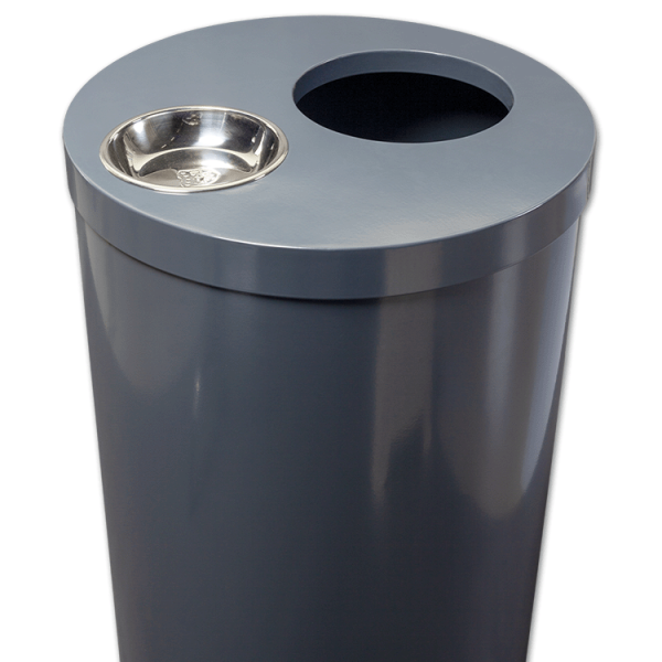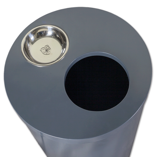 Kosz parkowy z popielniczką o pojemności 70 litrów jest dostępny w kolorze grafitowym (RAL 7016). Daje możliwość przykręcenia do podłoża dla zapewnienia maksymalnej stabilności. Kosz miejski ma zintegrowaną popielnicę ze stali. Jakość jego wykonania oraz bezpieczeństwo stosowania w przestrzeni publicznej potwierdzają certyfikaty ISO, BV i TUV.
