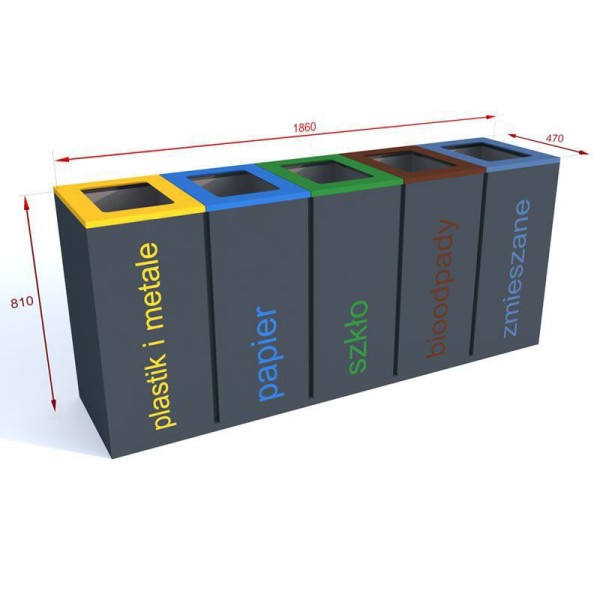 Prezentowany przez nas 5 – modułowy pojemnik na odpady o pojemności 100 L charakteryzuje się poniższymi wymiarami: