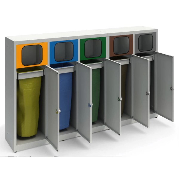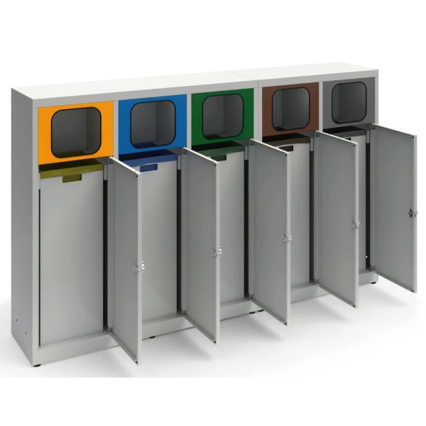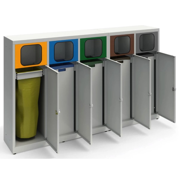 Kosz do segregacji 5-komorowy Eco Estri XL 5 x 80L ocynkowany z klapkami