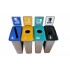 Kosze recyklingowe to połączenie 4 pojemników o pojemności 87 litrów. Każdy z nich posiada pokrywę w jednym z 4 kolorów segregacji: niebieskim, żółtym, zielonym i czarnym.