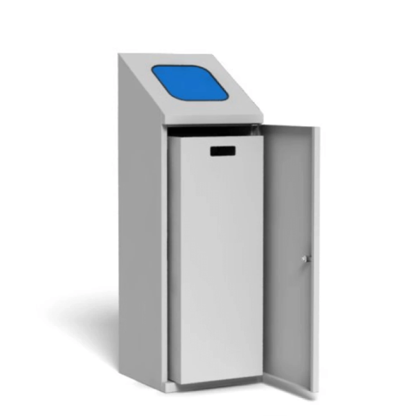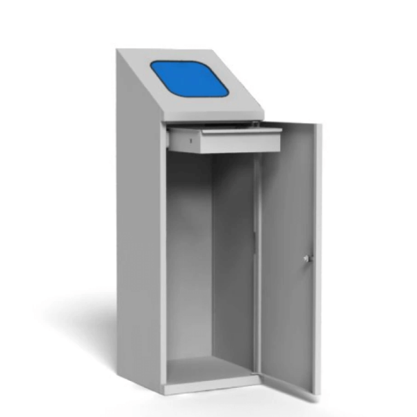 Co wyróżnia prezentowany pojemnik do segregacji odpadów do biura czy szkoły? Nie tylko trwałość, dzięki której sprawdza się w przestrzeniach intensywnie eksploatowanych. Należy podkreślić także otwór wrzutowy z samoczynnie zamykającą się uchylną klapką. Jest wygodna, bezpieczna i szczelna, ponieważ została wykończona uszczelkami. Pojemnik do segregacji wewnętrznej posiada również w standardzie ramkę na worek (o pojemności 120 litrów), która utrzymuje go we właściwym miejscu i pozwala zachować najwyższe standardy higieny. Użytkownicy mogą zdecydować się również na opcjonalny metalowy wkład wewnętrzny - rekomendowany do zbiórki cięższych odpadów.