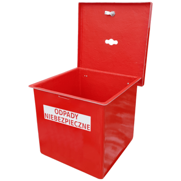 - pojemnik na odpady niebezpieczne wyposażony jest w zamek (osoby niepożądane nie będą miały dostępu do szkodliwych odpadów),
