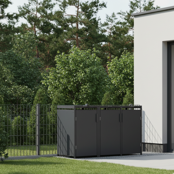 - Porządek i ochrona – skutecznie maskuje pojemniki, zabezpieczając je przed wiatrem, zwierzętami i osobami postronnymi.